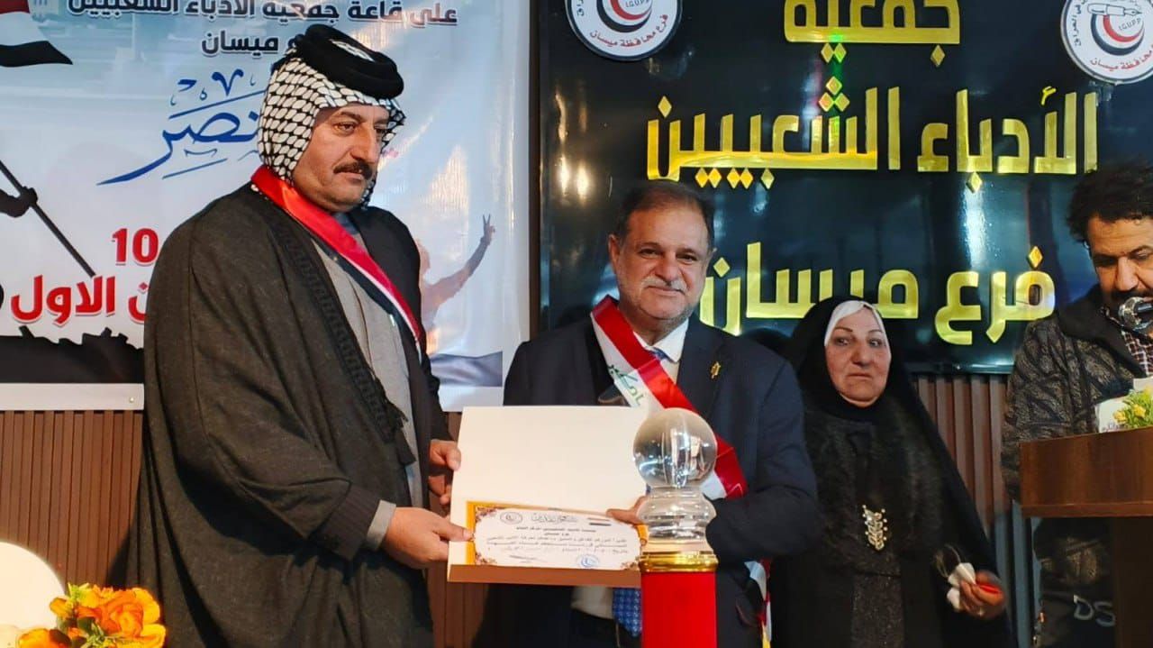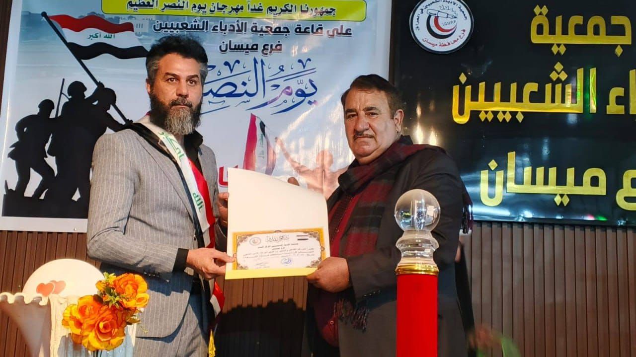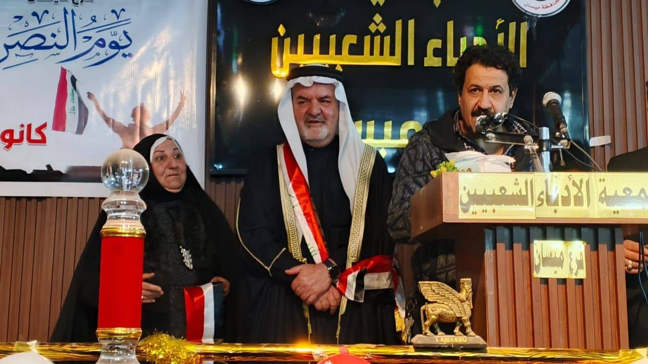 وقال” الشاعر “مصطفى العريفي” رئيس الجمعية : نحتفل في كل عام بهذه المناسبة , وقد حضر الاحتفال نخبة كبيرة من رؤساء المنظمات ورؤساء الدوائر الحكومية وممثلين عن بقية أطياف الشعب الميساني من الإخوة الصابئة والمسيح , كذلك حضره شخصيات من وجهاء وشيوخ العشائر , ليكتمل الكرنفال بجمال روح الحاضرين حيث تم تكريم تم تكريم 27 شخصية , شاكرا كل من ساهم في إنجاح هذه الأمسية والتي كانت بحجم المهرجان .