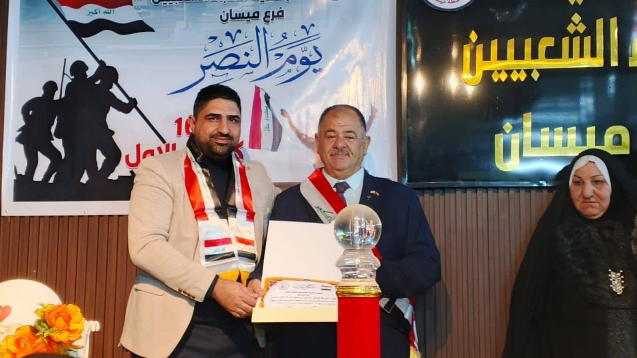 أقامت” , جمعية الأدباء الشعبيين في ميسان : احتفالا بالذكرى يوم “النصر العظيم على الإرهاب” , بحضور نخبة كبيرة من رؤساء المنظمات ورؤساء الدوائر الحكومية وممثلين عن بقية أطياف الشعب الميساني من الإخوة الصابئة والمسيح , كذلك حضره شخصيات من وجهاء وشيوخ العشائر , في مقر الجمعية .