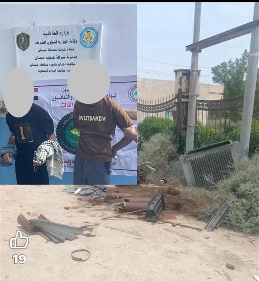 وفي نفس السياق” كشفت المكتب الإعلامي لقيادة شرطة محافظة ميسان : انه تم الإطاحة بمتهمين عدد (2) أقدما على سرقة محولة كهربائية قي ناحية السلام التابعة إلى قضاء الميمونة ،